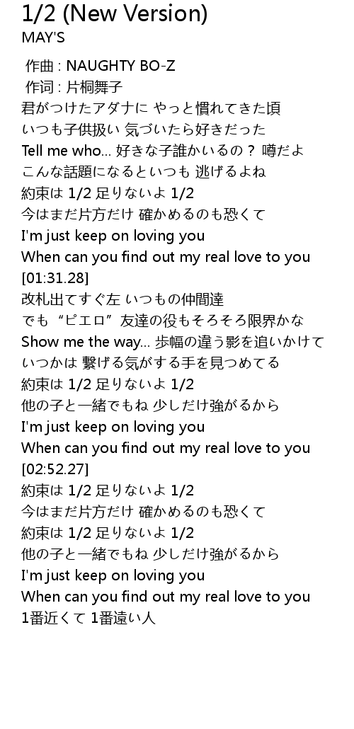 | [03:12.09] | 約束は 1/2 足りないよ 1/2 |