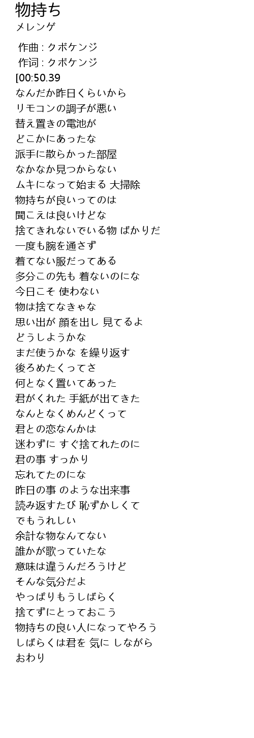 | [00:55.49] | 物は捨てなきゃな |