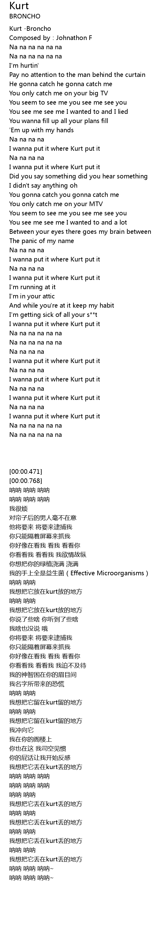 | [00:00.471] | Kurt -Broncho |