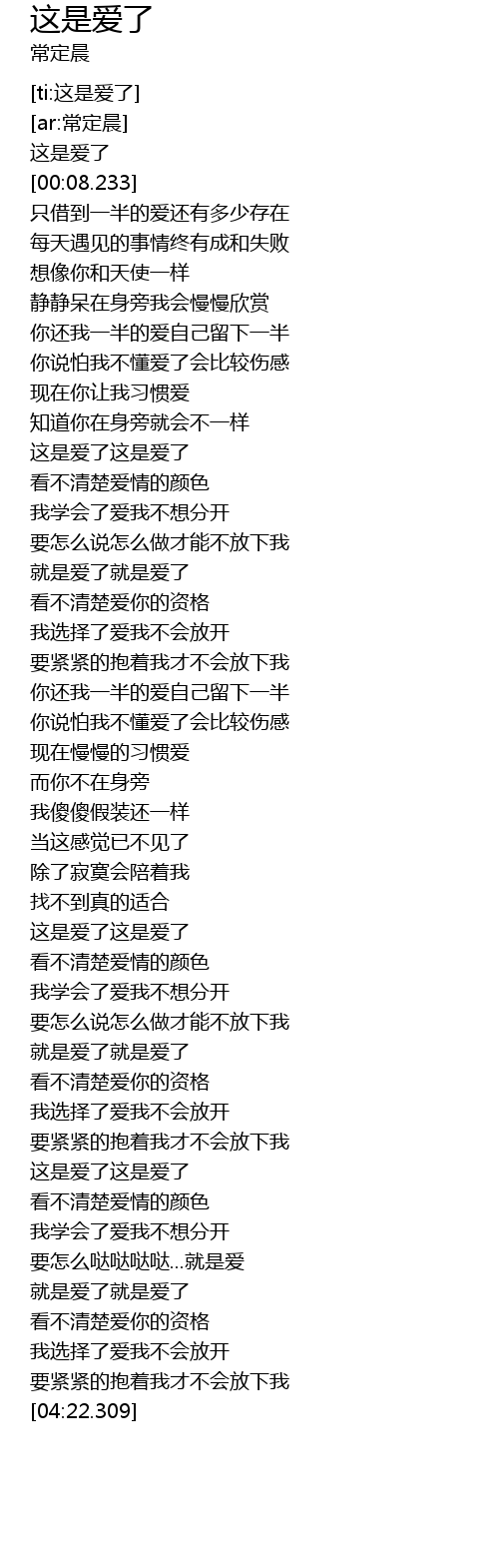 | [03:43.855] | zhè shì ài le zhè shì ài le |