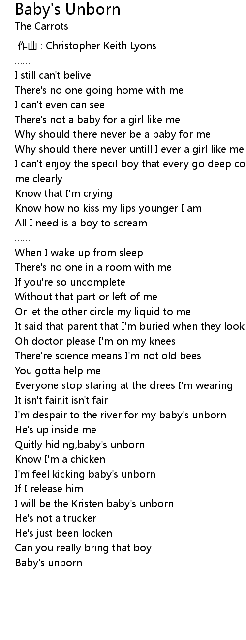 | [02:26.000] | I will be the Kristen baby' s unborn |