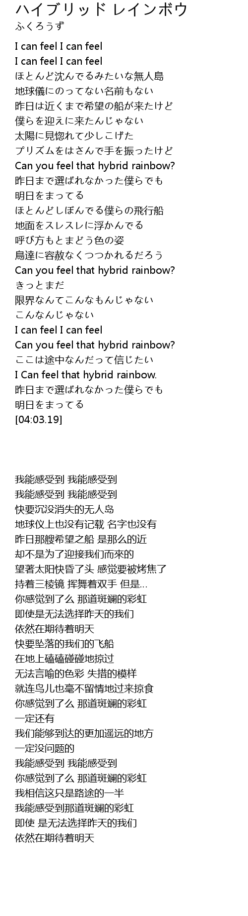 | [03:41.53] | I Can feel that hybrid rainbow. |