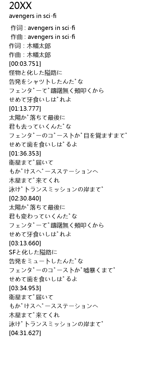 | [00:00.000] | 作词 : avengers in sci-fi |