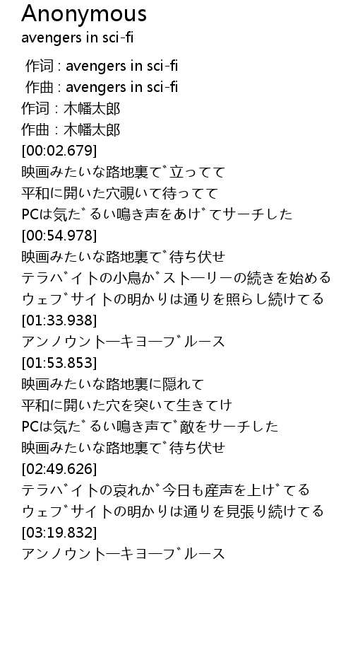 | [00:00.604] | 作曲 : avengers in sci-fi |