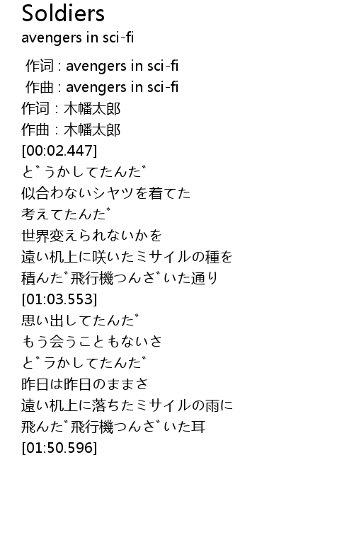 | [00:00.000] | 作词 : avengers in sci-fi |