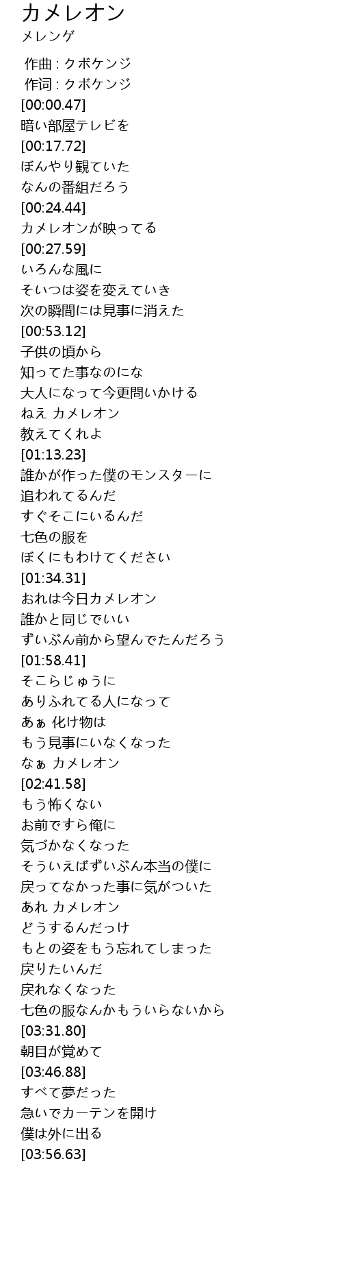 | [02:38.98] | なぁ カメレオン |