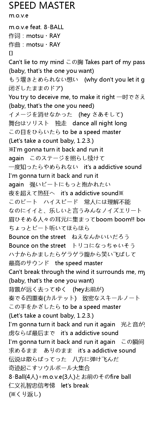 | Song | SPEED MASTER |