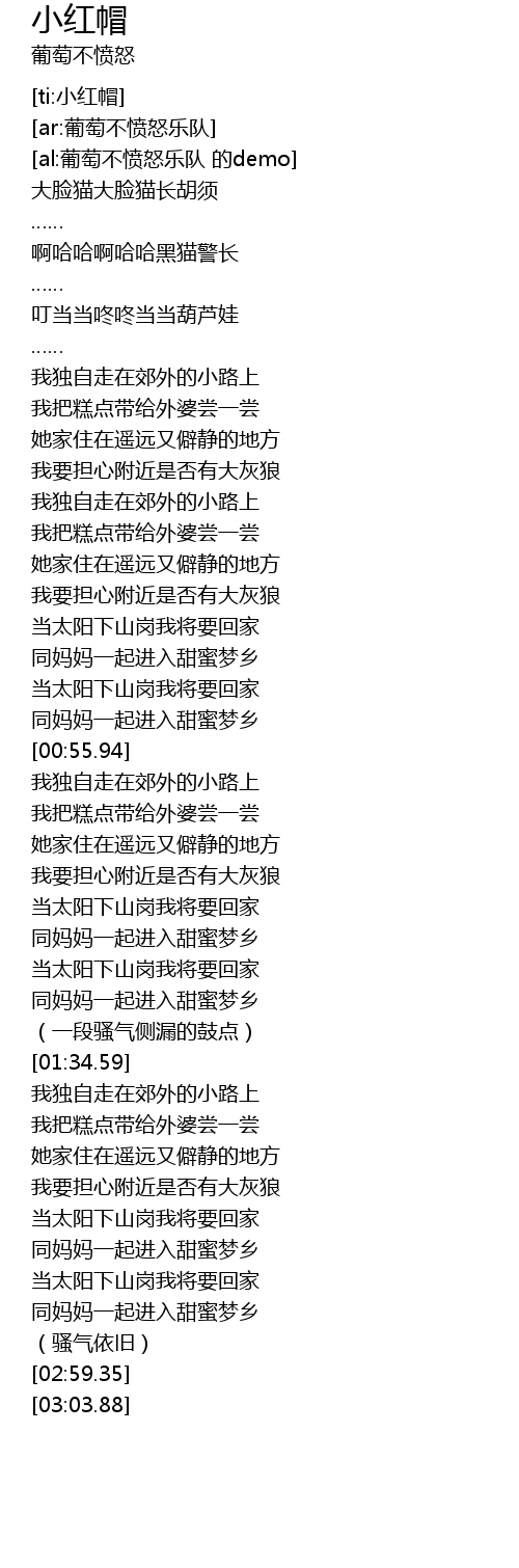 | [00:00.37] | 大脸猫大脸猫长胡须 |