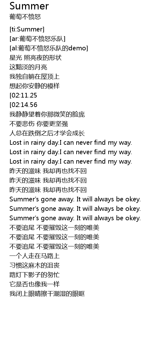 | [02:37.50] | Summer's gone away. It will always be okey. |