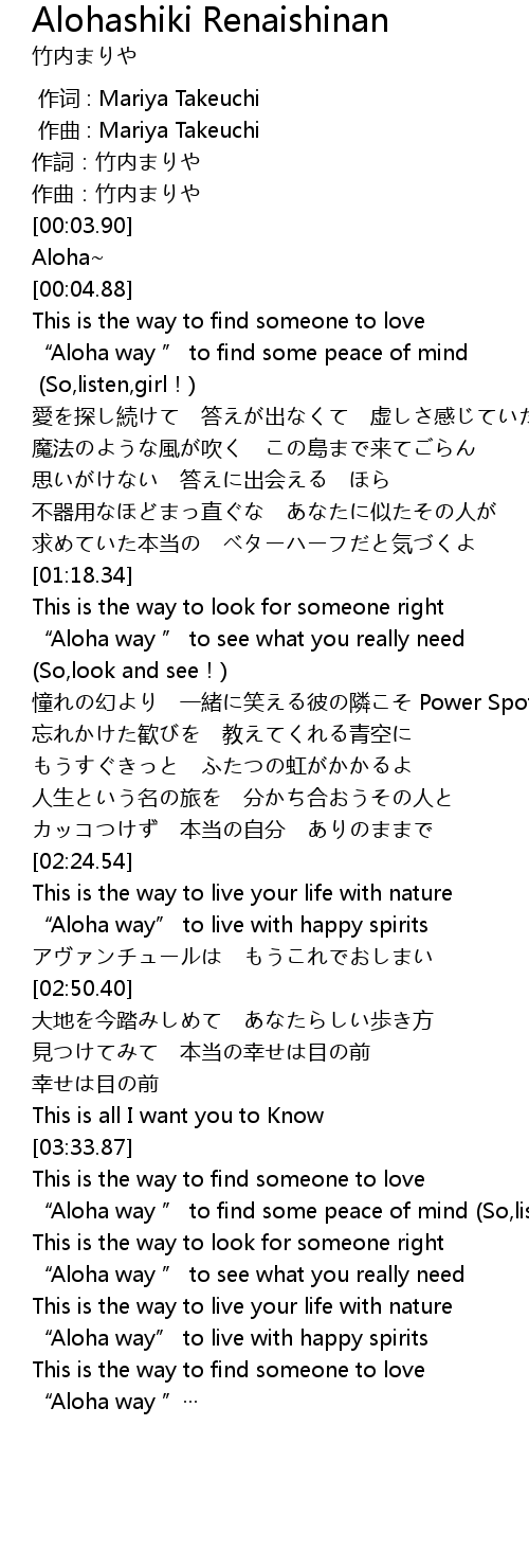| [03:43.34] | " Aloha way " to find some peace of mind So, listen, girl! |