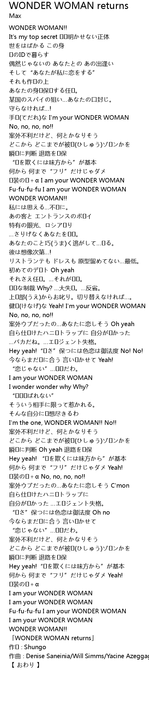 | [03:20.81] | 「WONDER WOMAN returns」 |