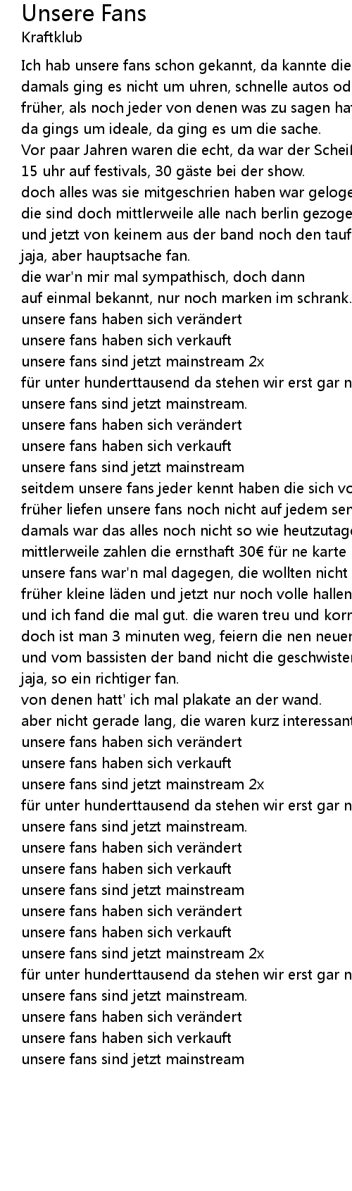 | unsere fans war'n mal dagegen, die wollten nicht gefallen | |