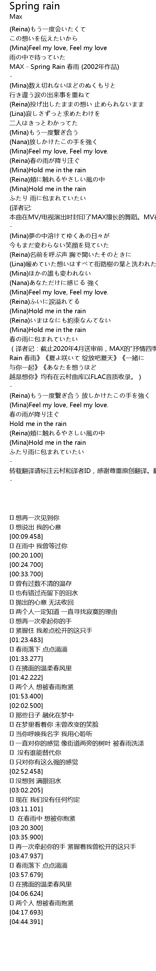 | [00:20.100] | MAX - Spring Rain 春雨 (2002年作品) |
