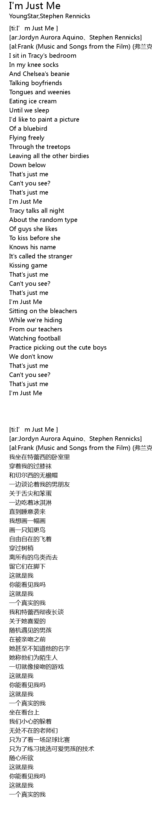| [ti:I’m Just Me ] | |