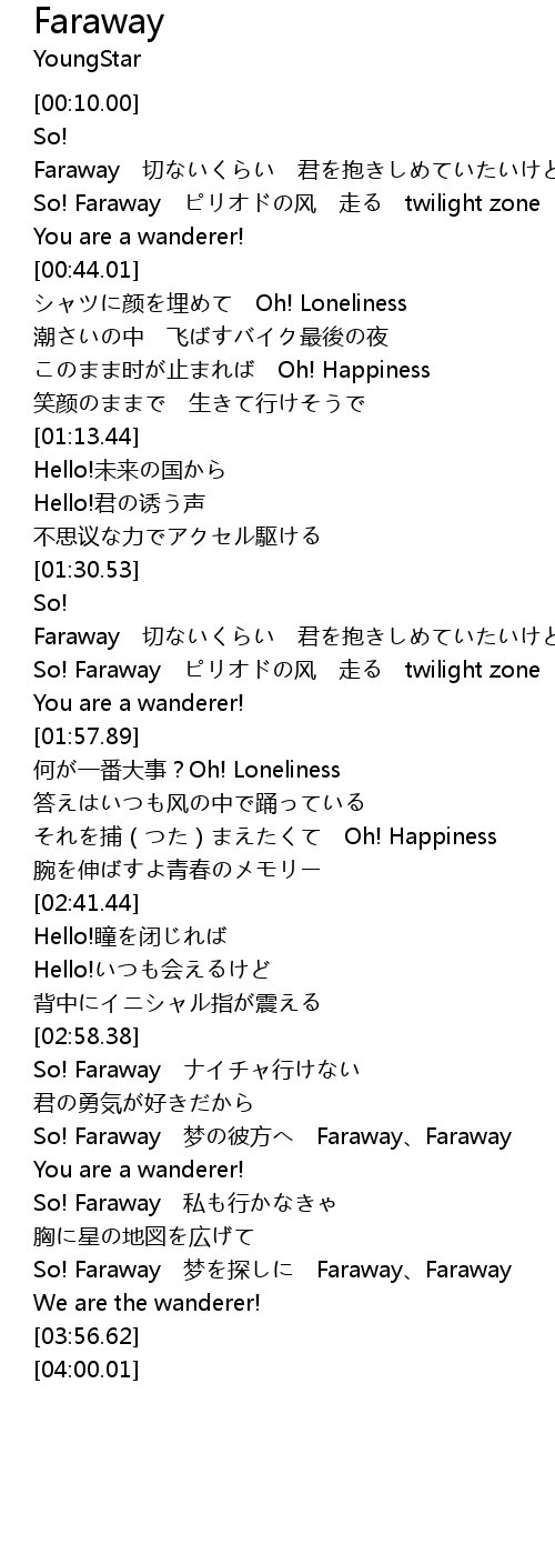 | [02:58.76] | So! Faraway ナイチャ行けない |