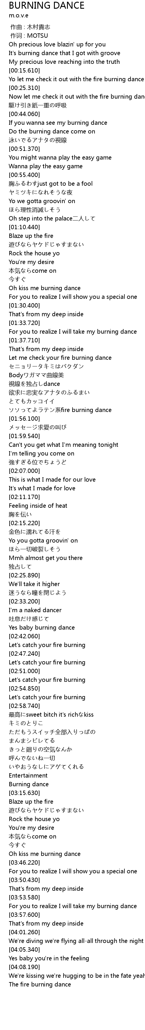 | [03:43.660] | Oh kiss me burning dance |