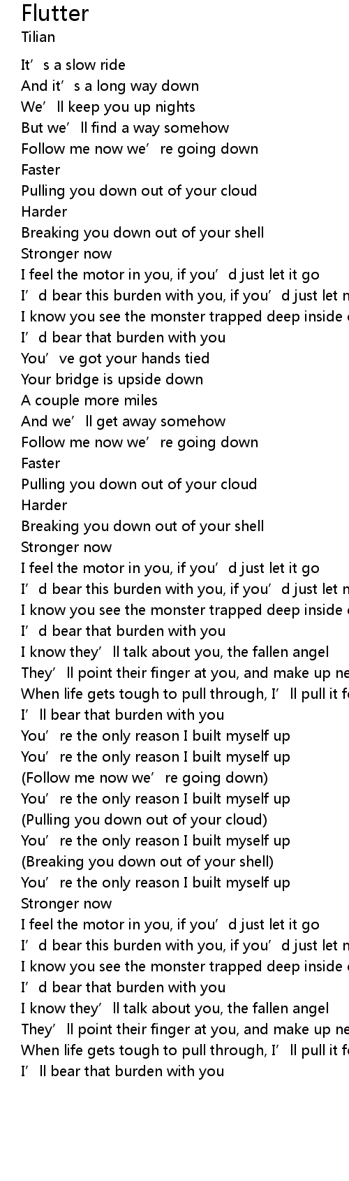 | [00:50.29] | I feel the motor in you, if you' d just let it go |