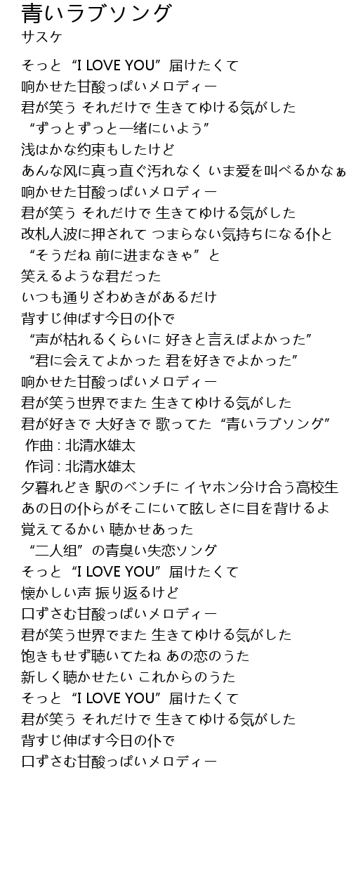 | [03:52] | 君が好きで 大好きで 歌ってた“青いラブソング” |