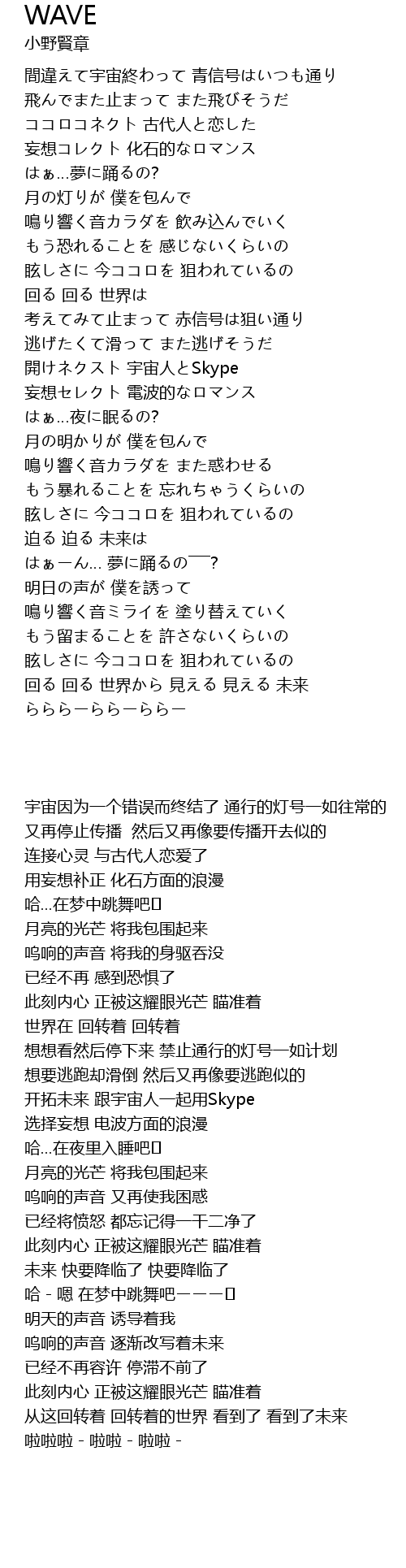 | [00:31.270] | 間違えて宇宙終わって 青信号はいつも通り |