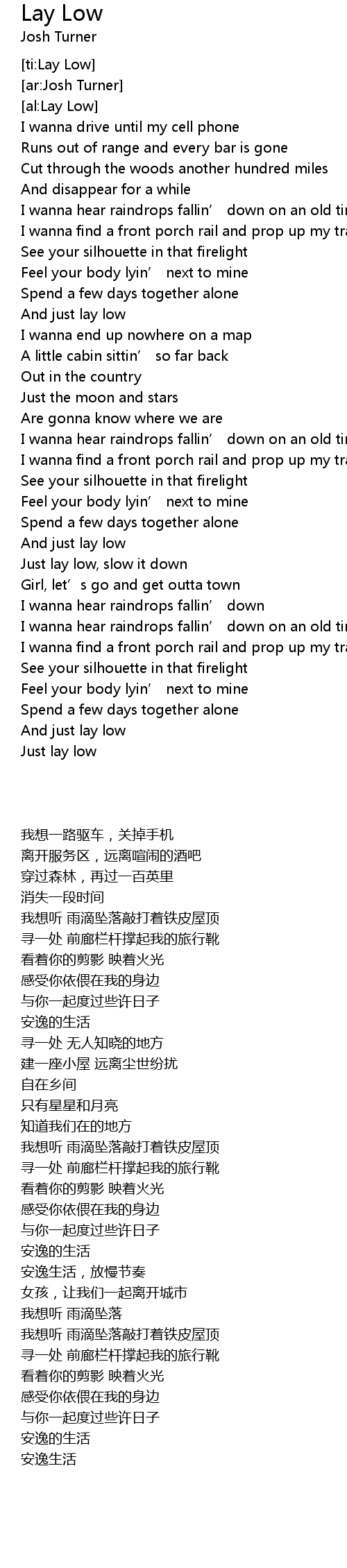 | [00:44.76] | I wanna hear raindrops fallin' down on an old tin roof |