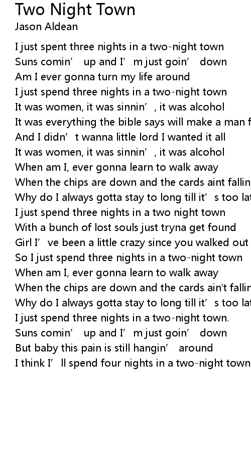 | I just spend three nights in a twonight town | |
