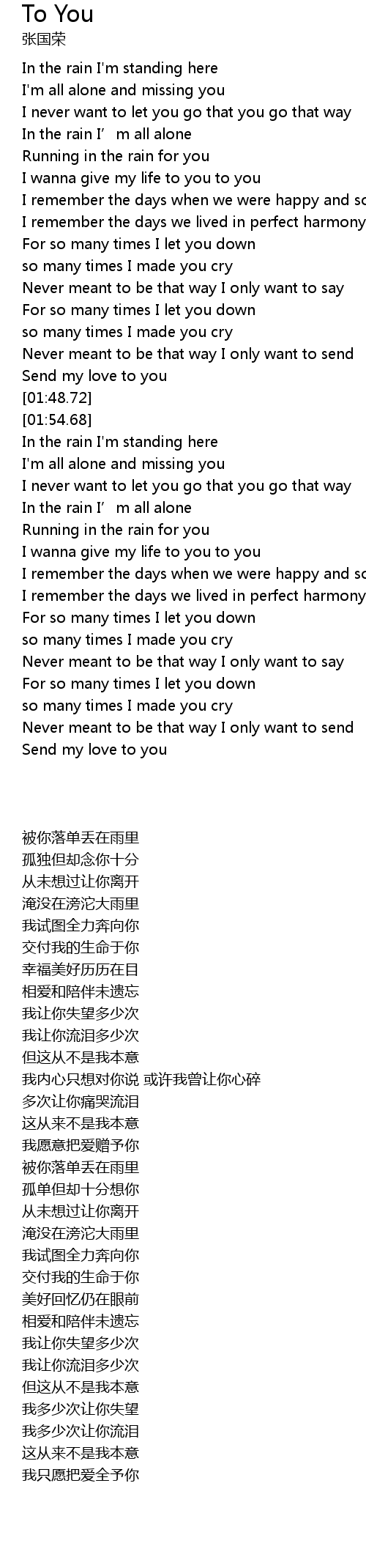 | [01:58.65] | In the rain I' m standing here |