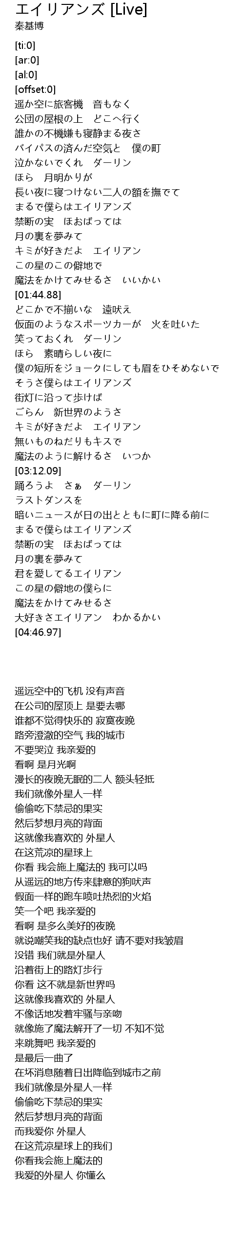 | [04:37.43] | 大好きさエイリアン わかるかい |