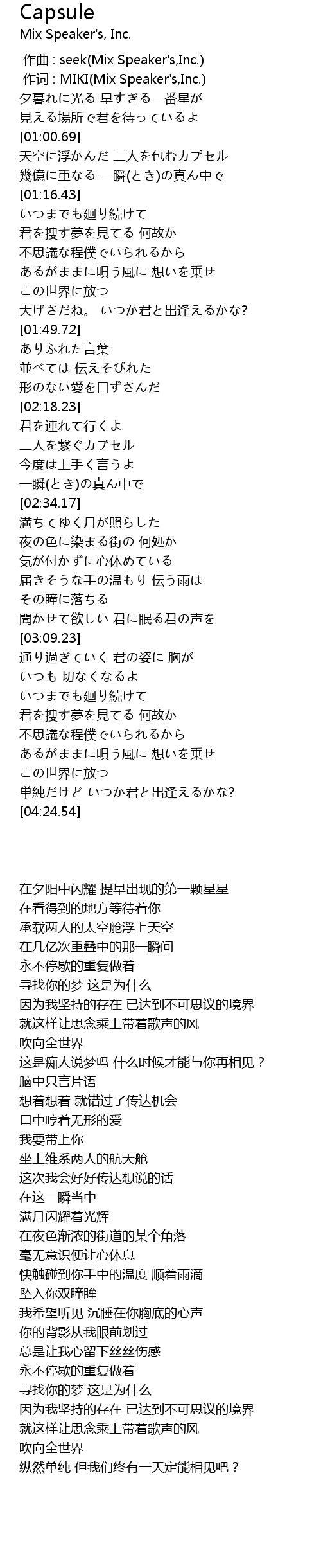 | [01:01.41] | 天空に浮かんだ 二人を包むカプセル |