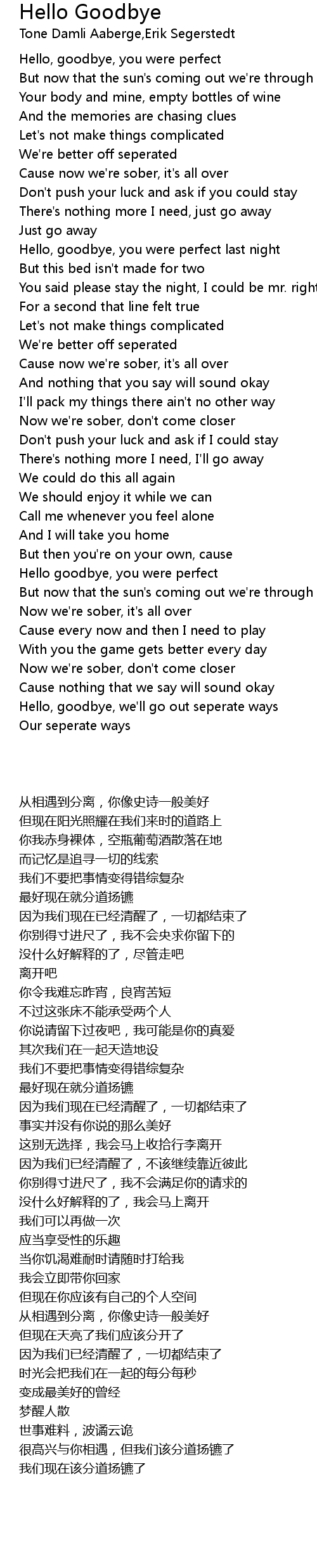 Hello, goodbye, you were perfect last night |