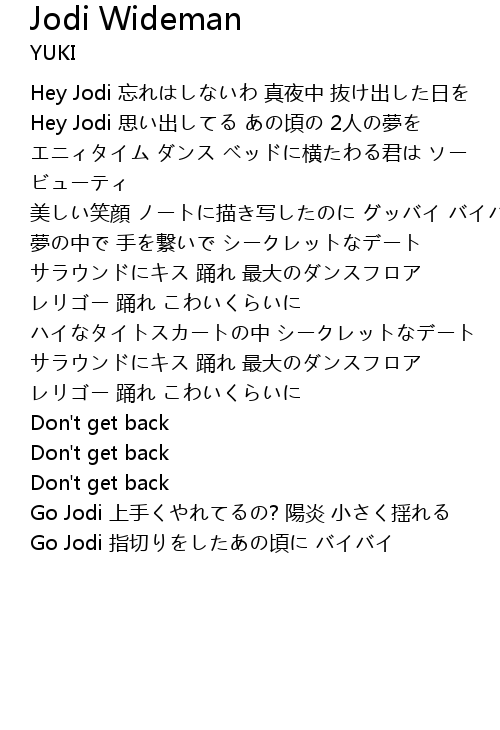 | Hey Jodi 思い出してる あの頃の 2人の夢を | |