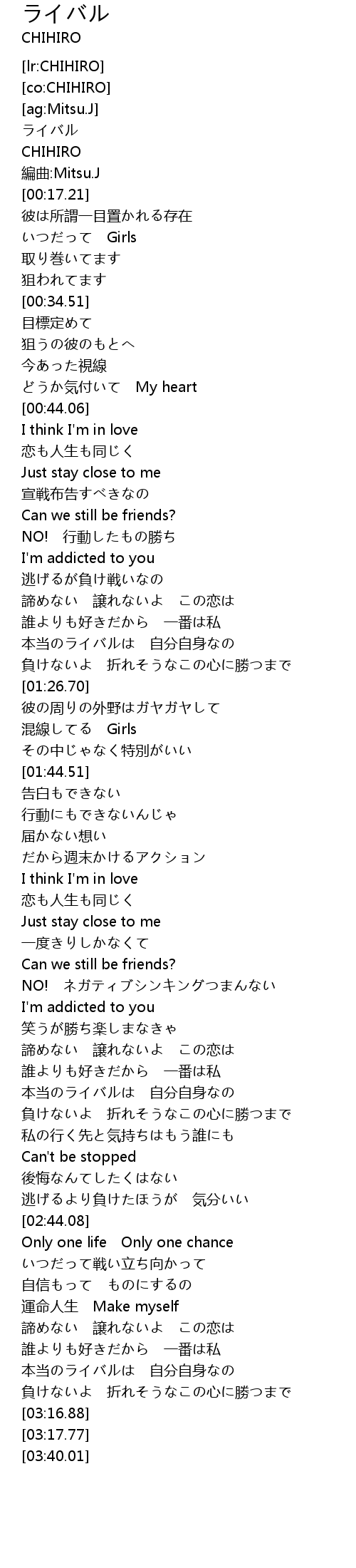 | [03:03.73] | 本当のライバルは 自分自身なの |