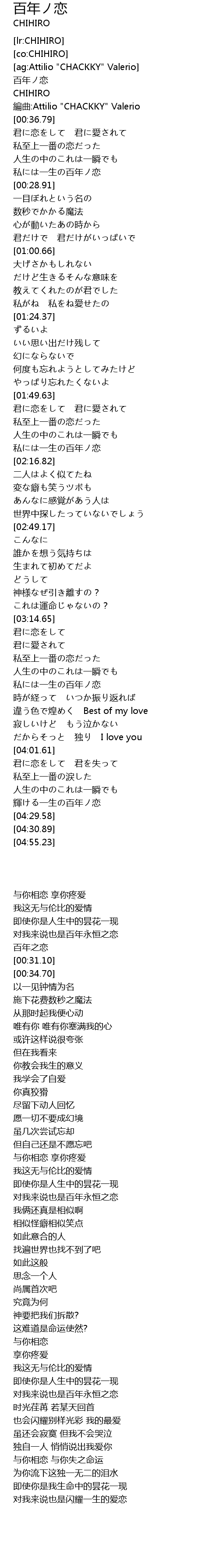 | [00:19.83] | 私には一生の百年ノ恋 |