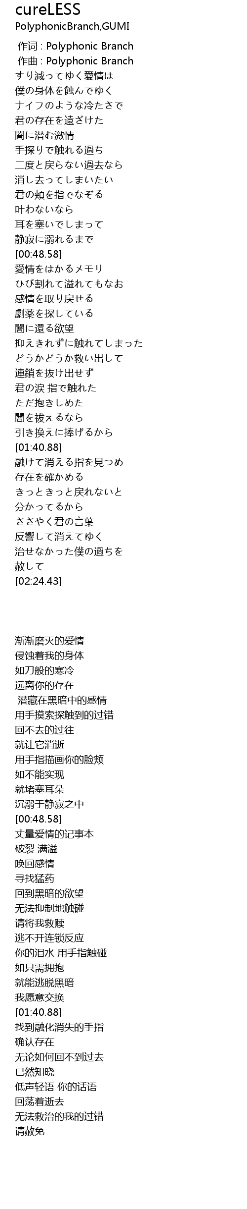 | [00:00.000] | zuò cí : Polyphonic Branch |