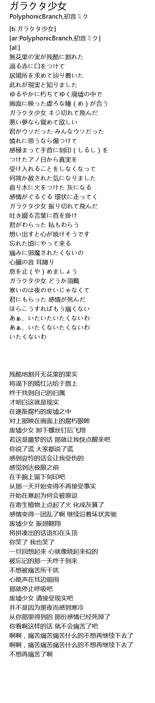| [00:40.69] | ガラクタ少女 ネジ切れて飛んだ |