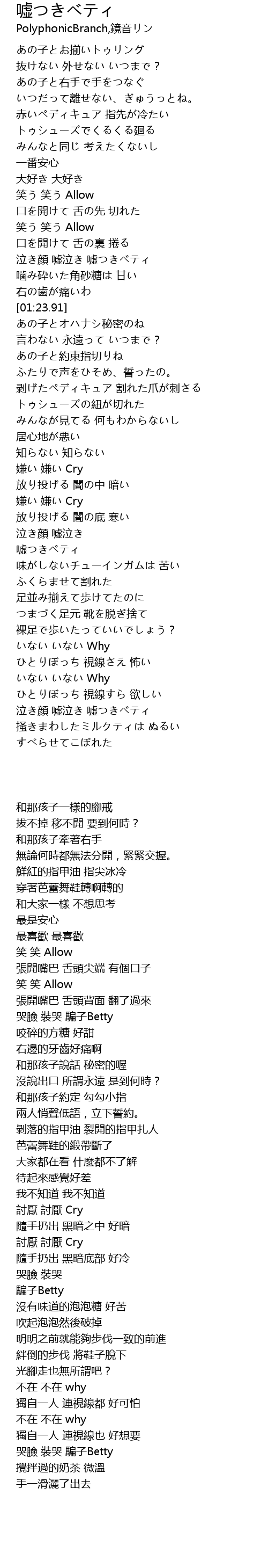 | [03:32.48] | 泣き顔 嘘泣き 嘘つきベティ |