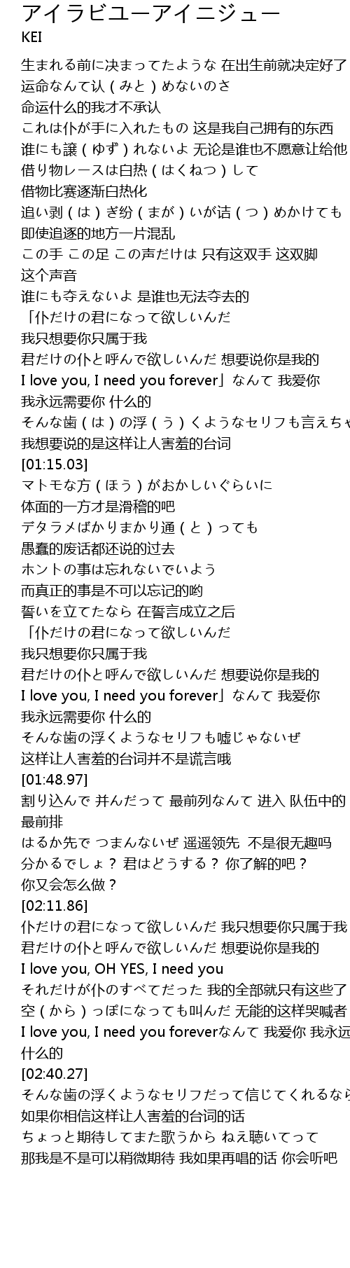 | [02:36.45] | I love you, I need you foreverなんて 我爱你 我永远需要你 什么的 |