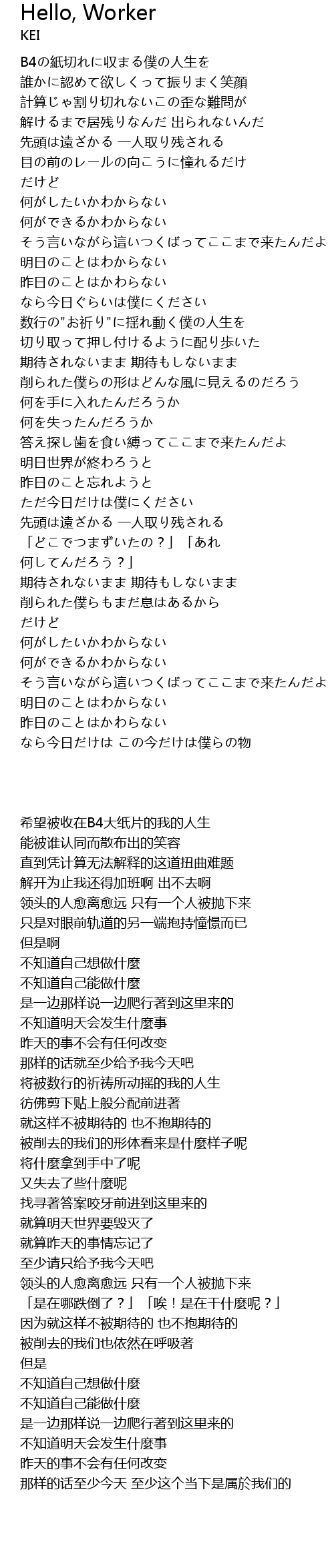 Hello, Worker Lyrics
