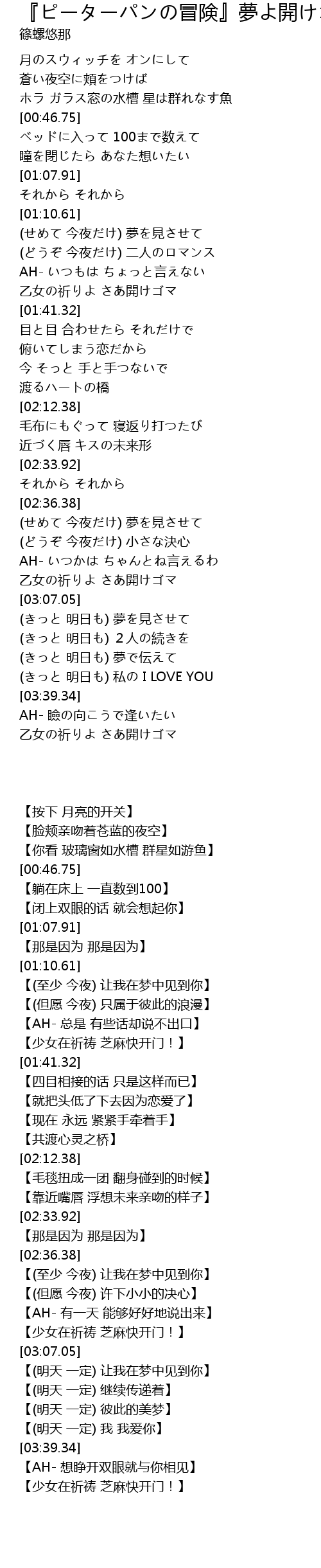 | [03:00.21] | 乙女の祈りよ さあ開けゴマ |