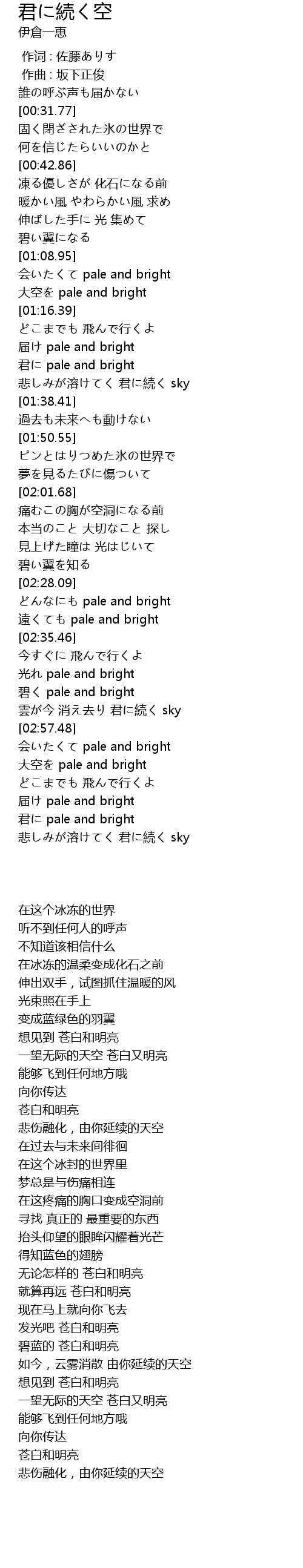 | [03:43.66] | 悲しみが溶けてく 君に続く sky |