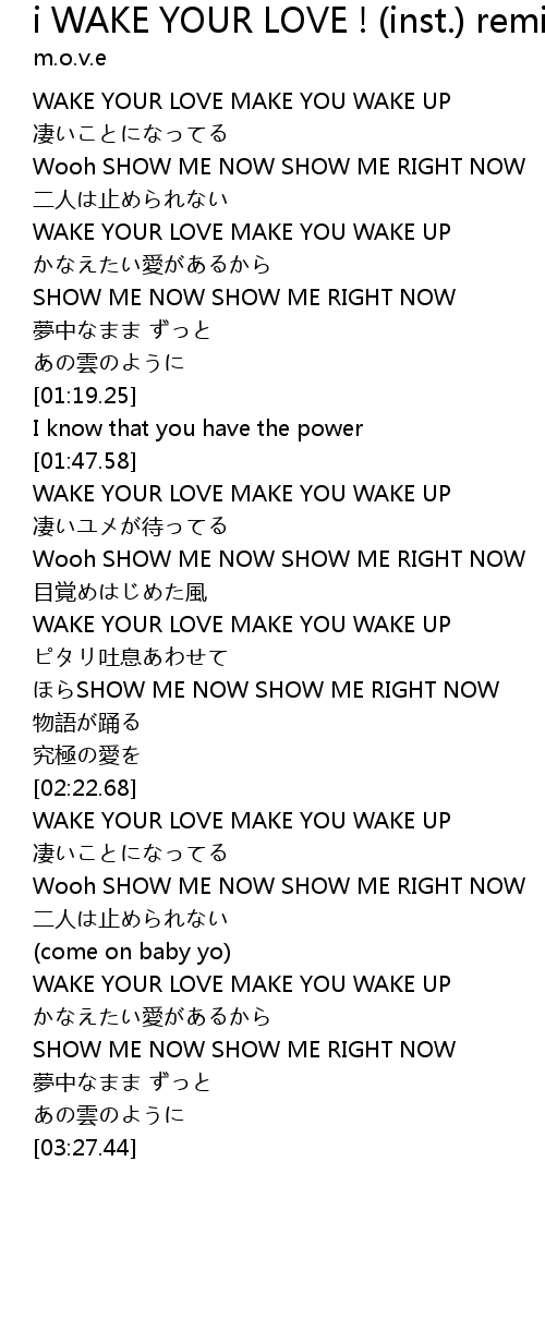 | [00:53.70] | WAKE YOUR LOVE MAKE YOU WAKE UP |