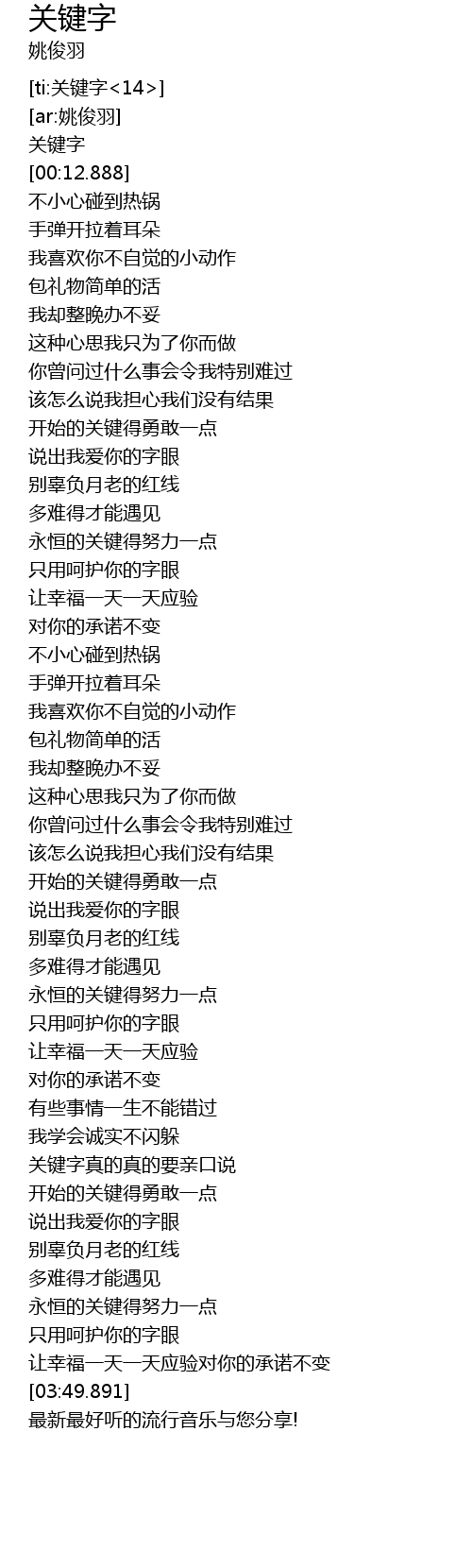 | [03:05.171] | 关键字真的真的要亲口说 |