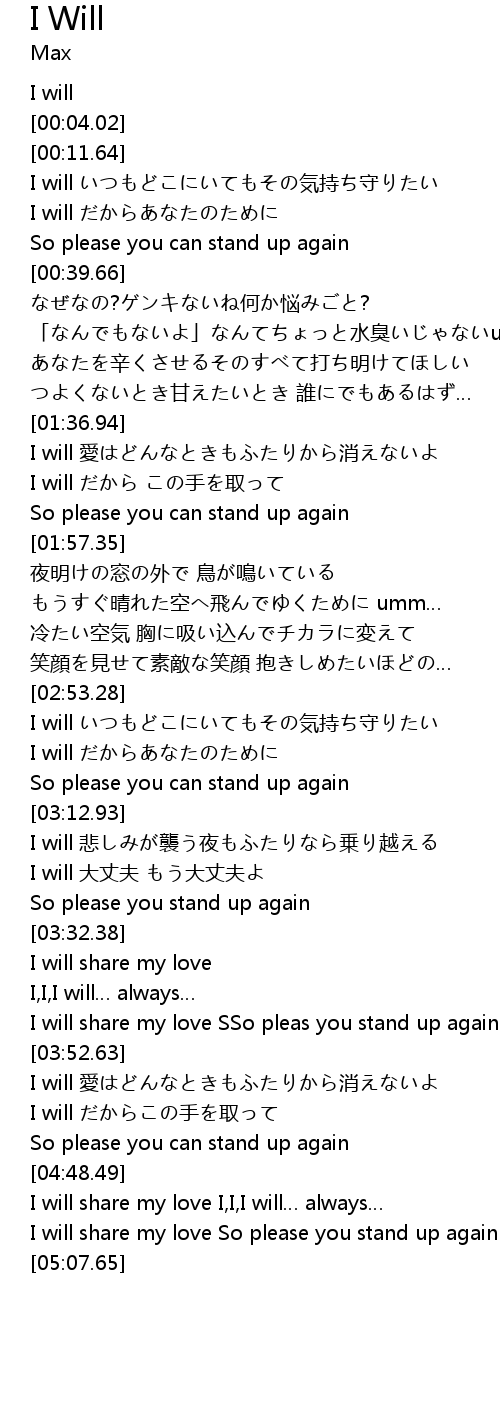 | [03:22.88] | I will 大丈夫 もう大丈夫よ |