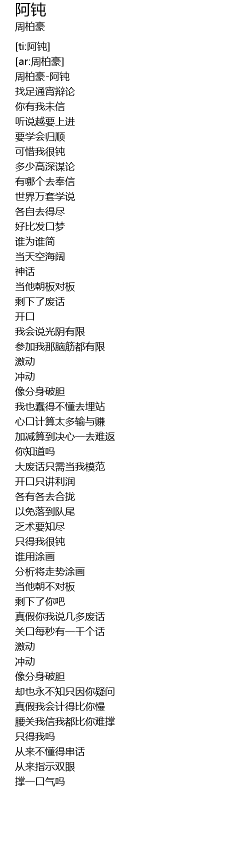 | [00:00.268] | zhōu bǎi háo ā dùn |