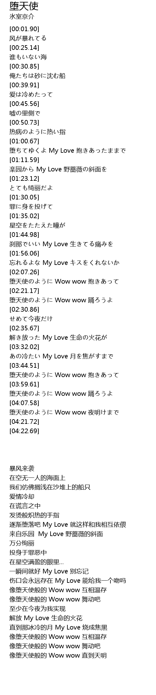 | [03:47.98] | 堕天使のように Wow wow 抱きあって |