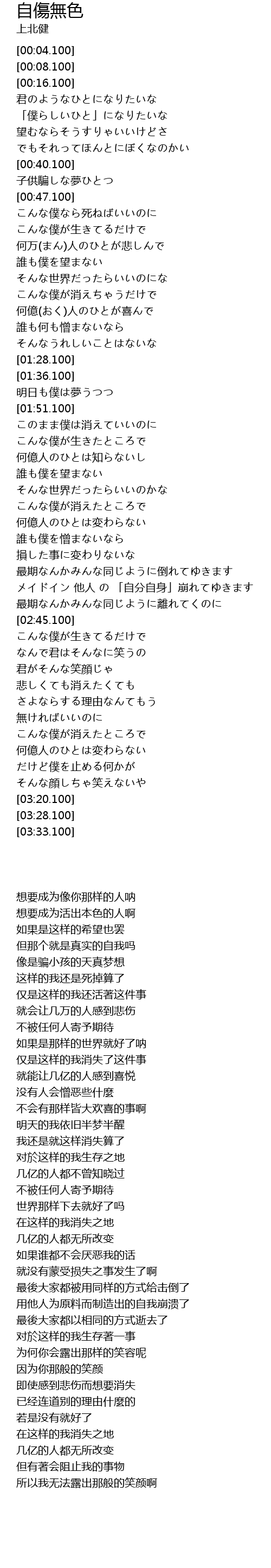 | [00:49.100] | こんな僕なら死ねばいいのに |