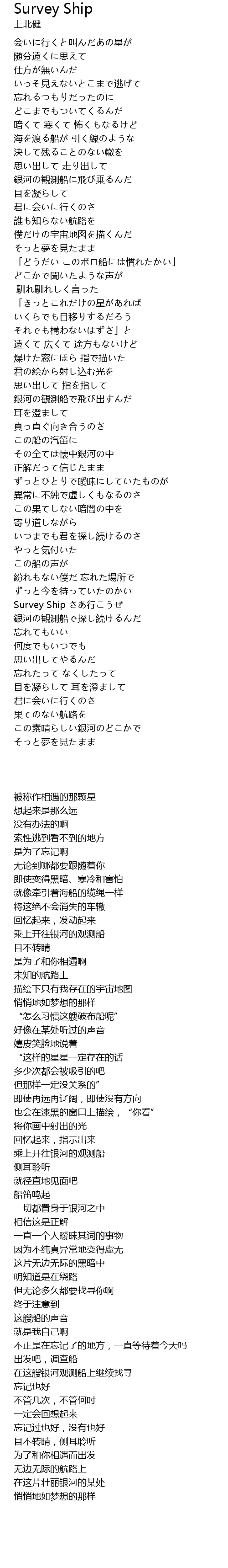 | [04:09.00] | Survey Ship xíng |