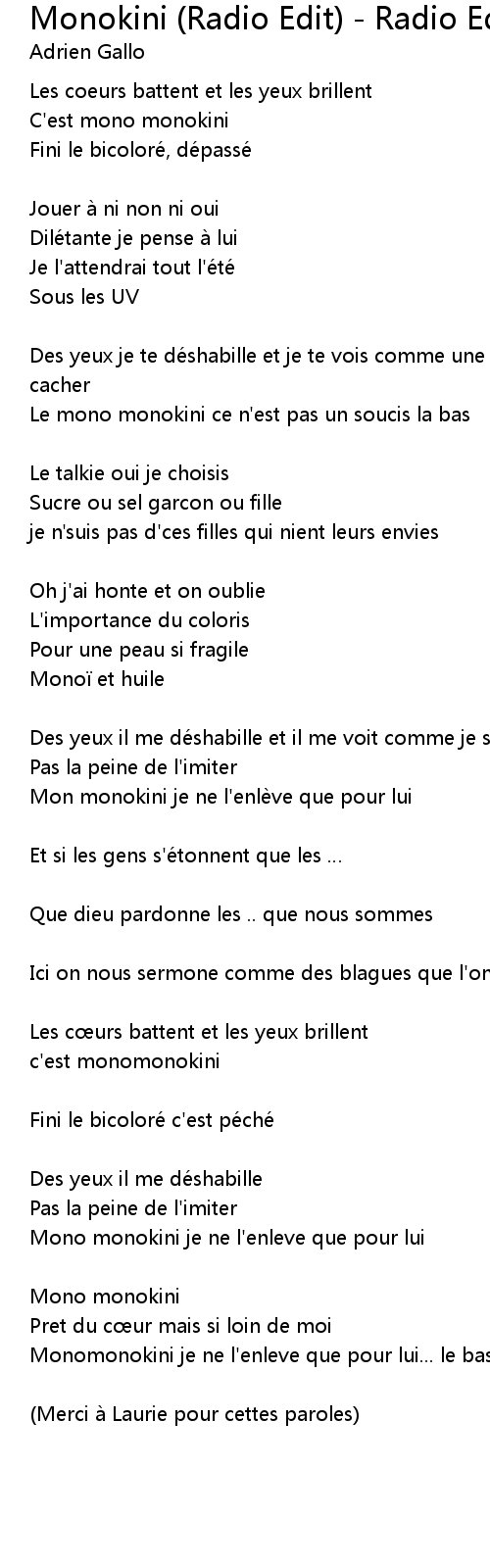 | Mon monokini je ne l' enlè ve que pour lui | |