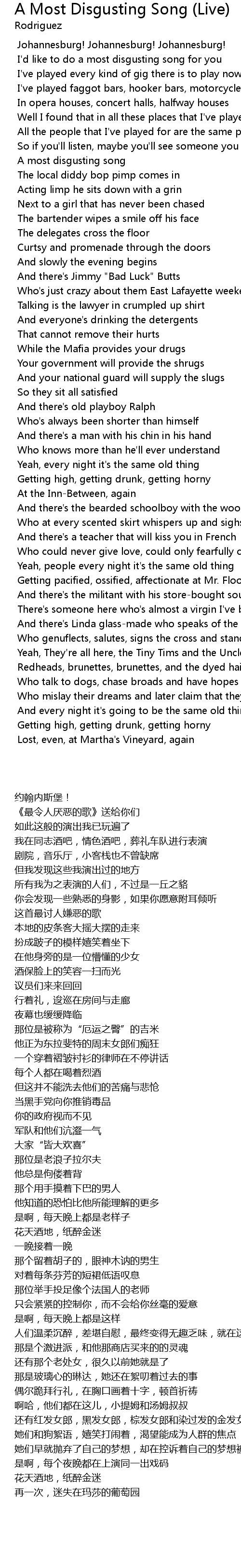 | [00:38.409] | I've played faggot bars, hooker bars, motorcycle funerals |