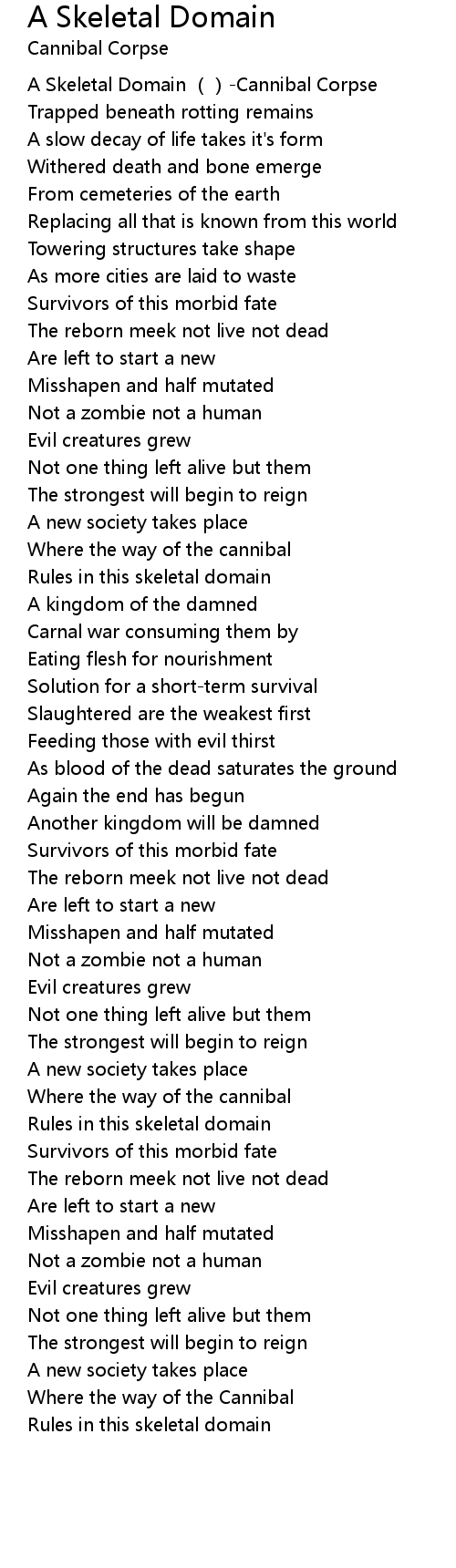 | [00:00.00] | A Skeletal Domain ()-Cannibal Corpse |