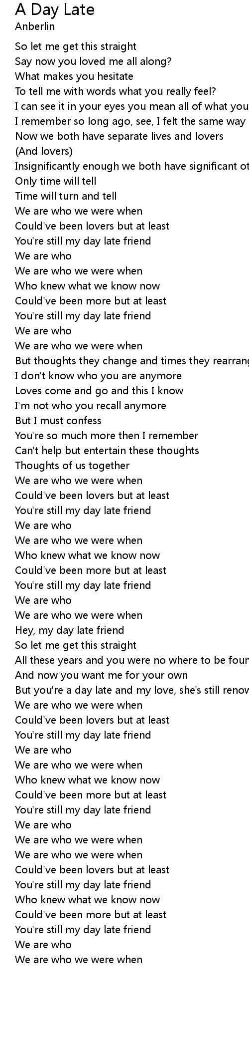| You're still my day late friend | |